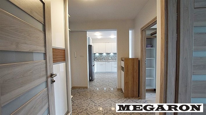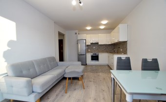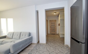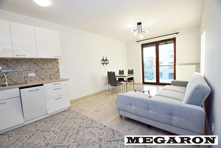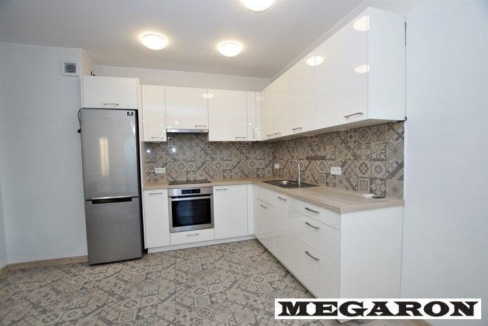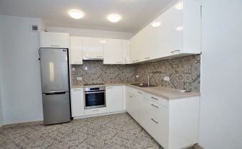 vir_listalng_meble_kuchenne_w_zabudowie, table with chairs, refrigerator, sink with battery, induction hob, dish-washer