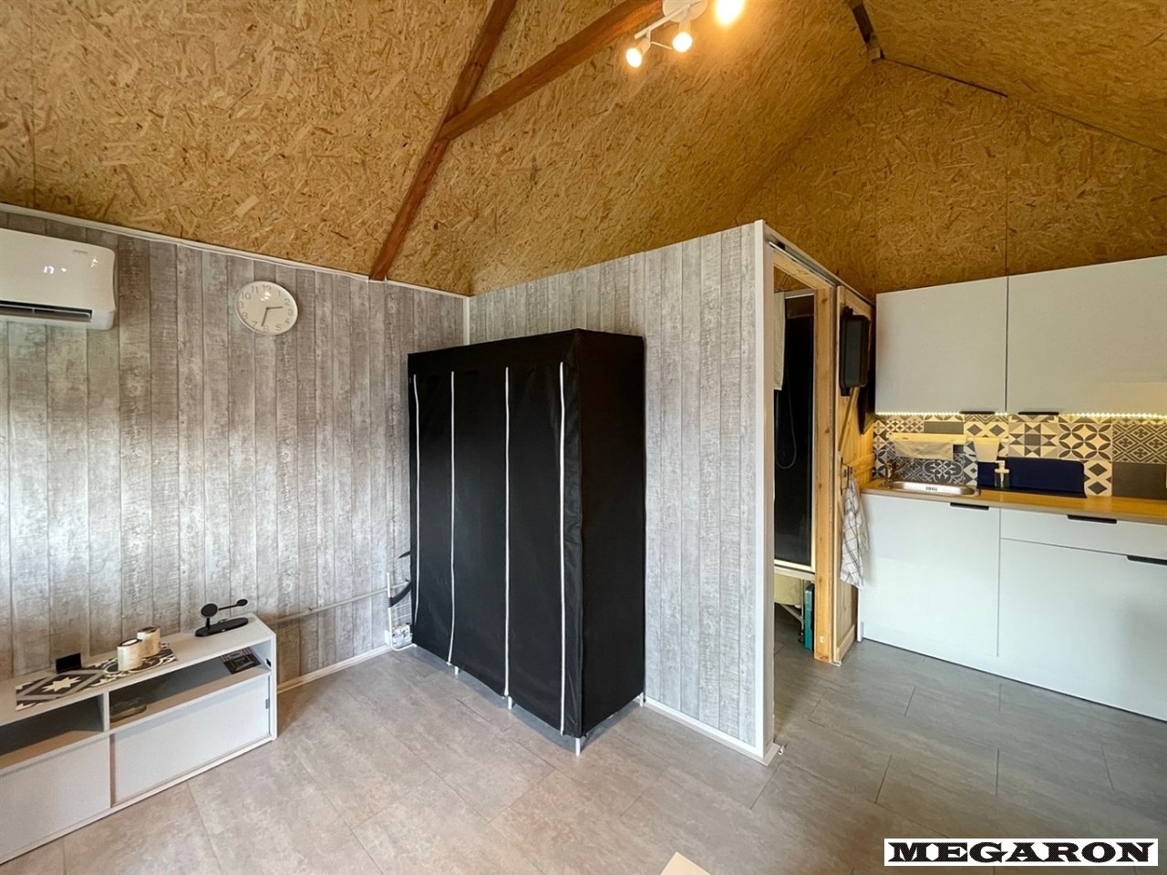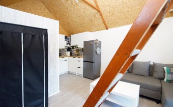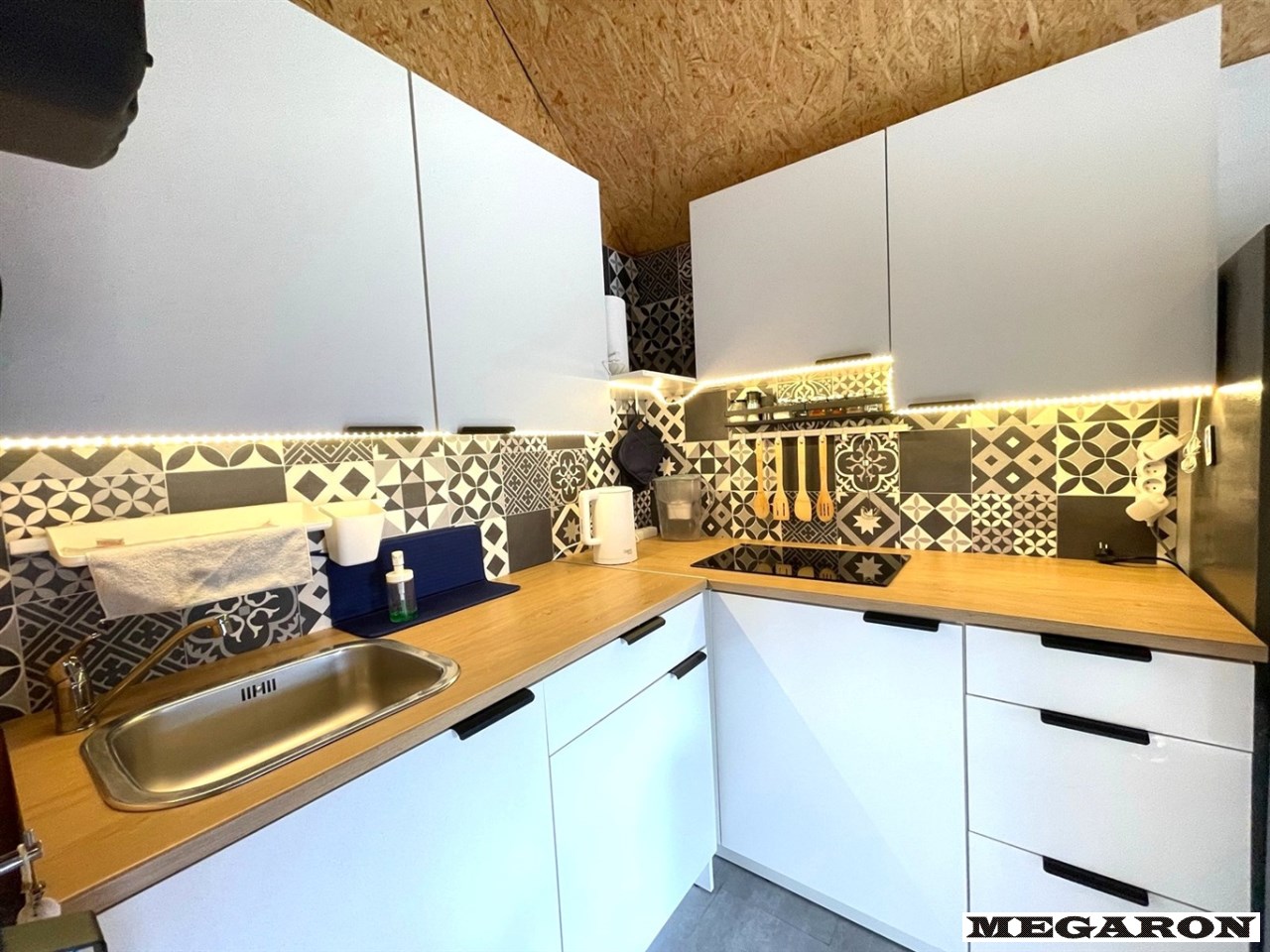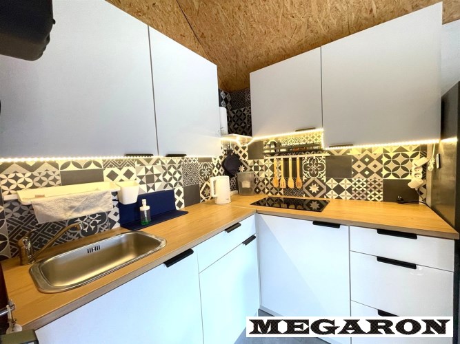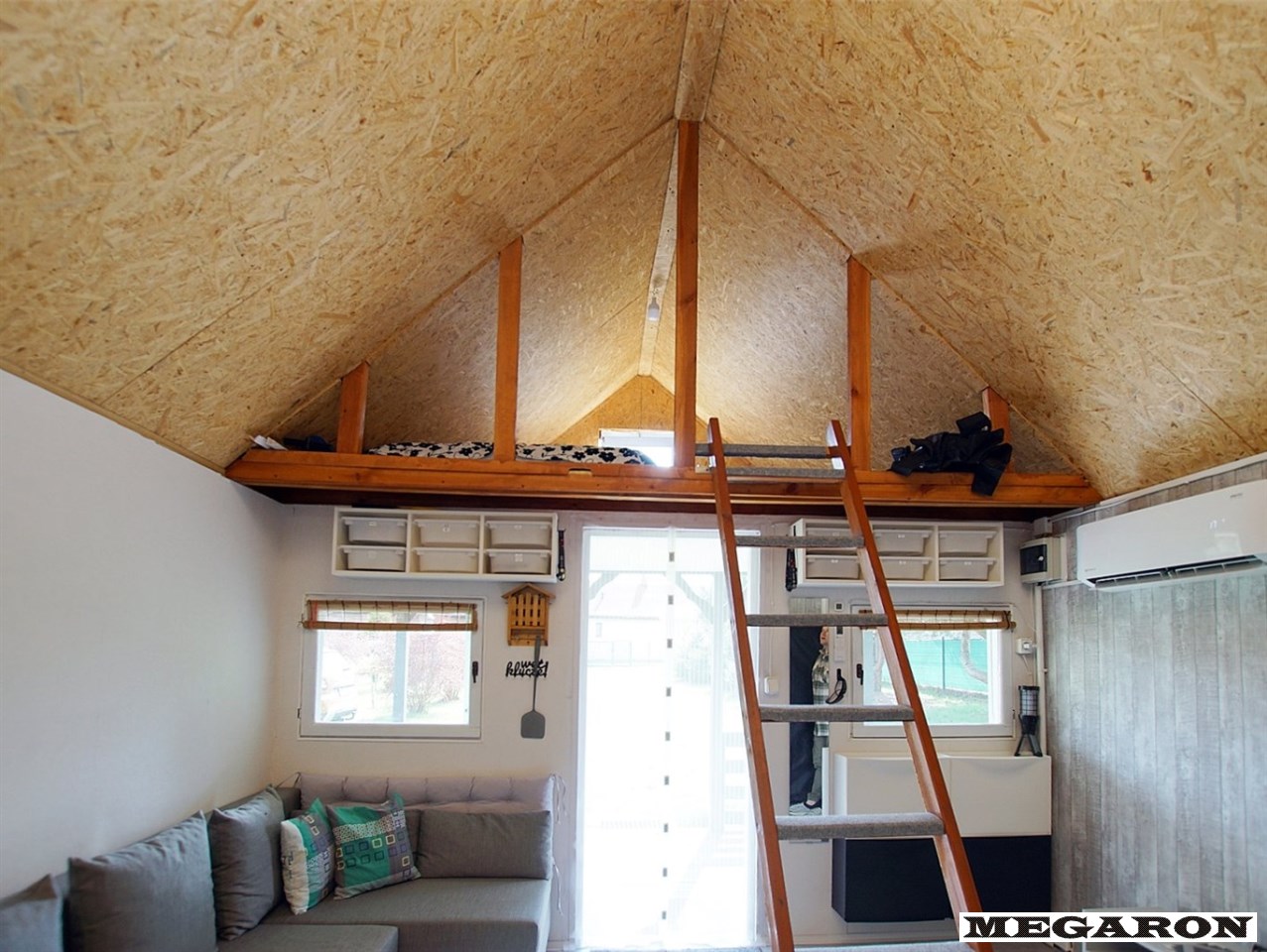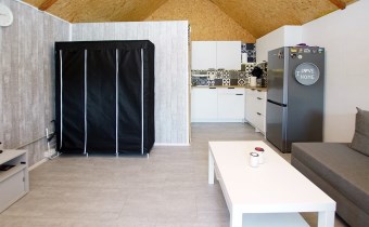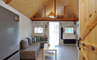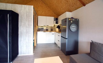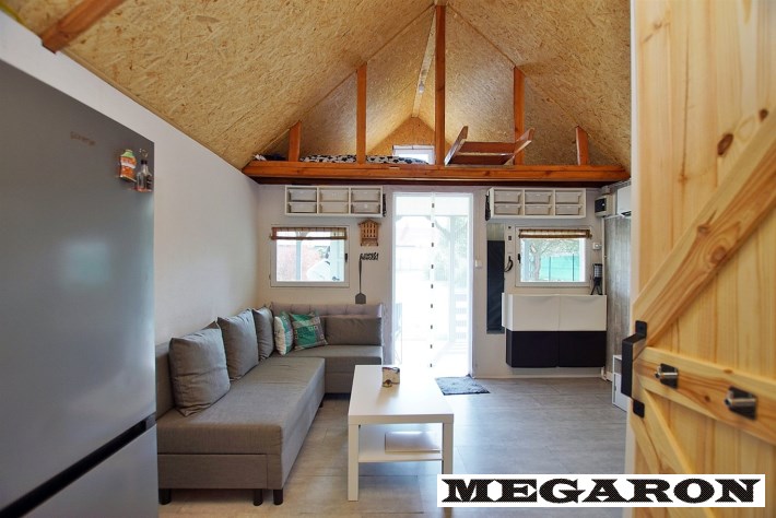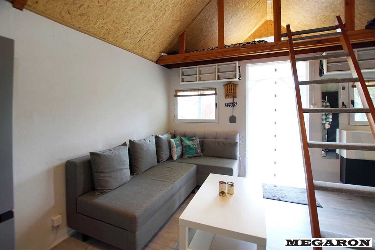 • Komfort: Klimatyzacja (grzanie/chłodzenie), antresola sypialna, luksusowy aneks kuchenny (indukcja, lodówka, mikrofalówka), strefa dzienna z wygodnym narożnikiem i stolikiem kawowym.