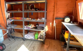 Działka sprzedawana z pełnym wyposażeniem domku letniskowego oraz domkiem narzędziowym.