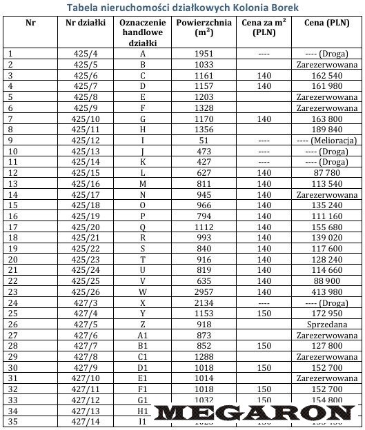 Uzbrojone działki budowlane – Kolonia Borek , ceny od 87900!
