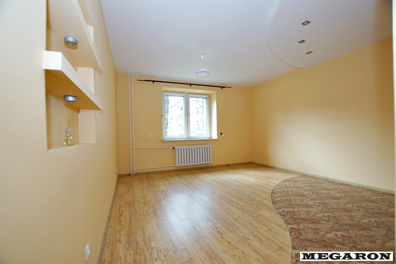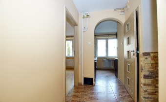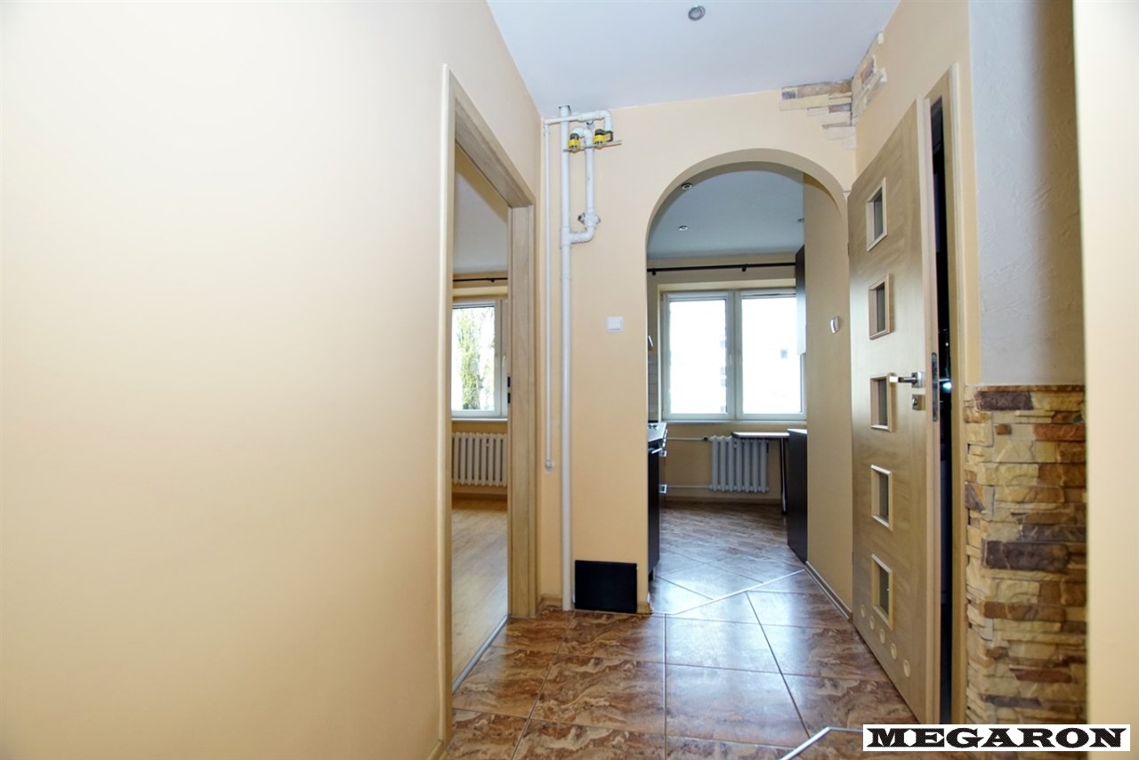 Mieszkanie usytuowane jest na pierwszym piętrze w czteropiętrowym, solidnym budynku z cegły. Wyróżnia się funkcjonalnym układem pomieszczeń – składa się z dwóch jasnych, ustawnych pokoi, przestronnej kuchni z meblami wykonanymi na wymiar, przedpokoju oraz łazienki.