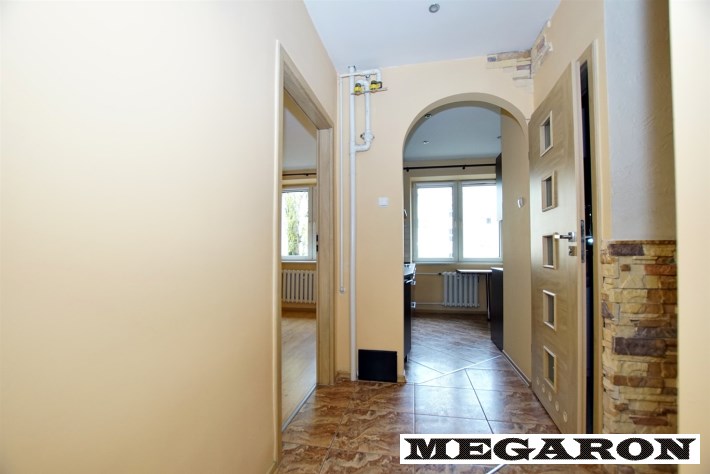 Mieszkanie usytuowane jest na pierwszym piętrze w czteropiętrowym, solidnym budynku z cegły. Wyróżnia się funkcjonalnym układem pomieszczeń – składa się z dwóch jasnych, ustawnych pokoi, przestronnej kuchni z meblami wykonanymi na wymiar, przedpokoju oraz łazienki.