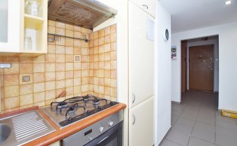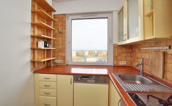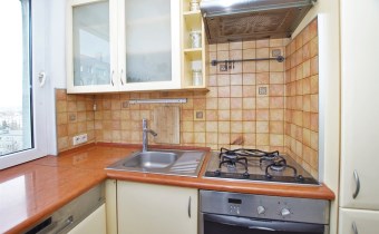 Kuchnia z oknem - niewielka, otwarta na przedpokój, w pełni umeblowana.