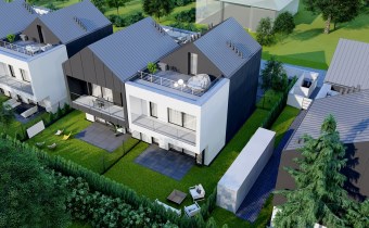 Mieszkanie o powierzchni 75,56 m2, na którą składają się: wiatrołap, salon z aneksem kuchenny, dwie sypialnie, duża, ładna antresola, łazienka i pomieszczenie techniczne. Z salonu oraz jednej z sypialni można wyjść na duży balkon. Na drugim poziomie znajduje się dodatkowa przestrzeń w postaci antresoli, z której to wychodzimy na piękny taras. Każdy z czterech lokali mieszkalnych posiada osobne, niezależne wejście.