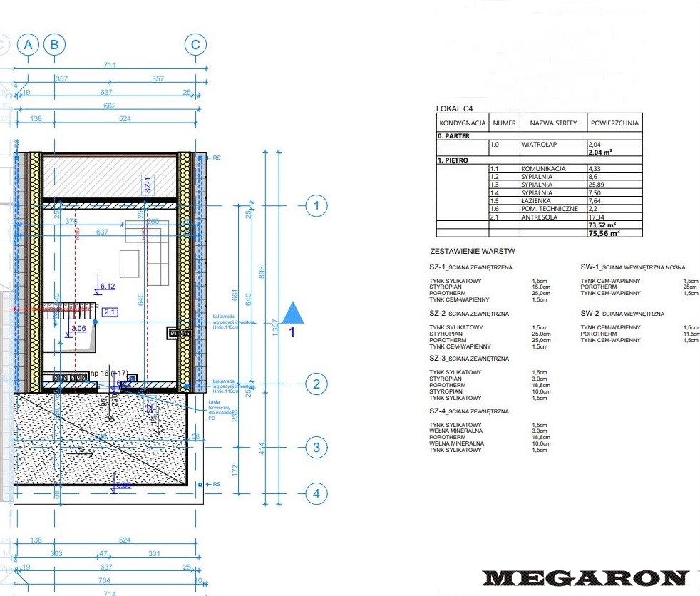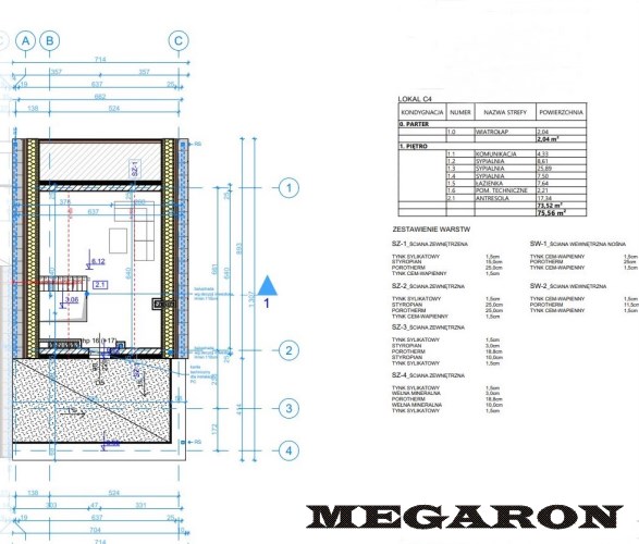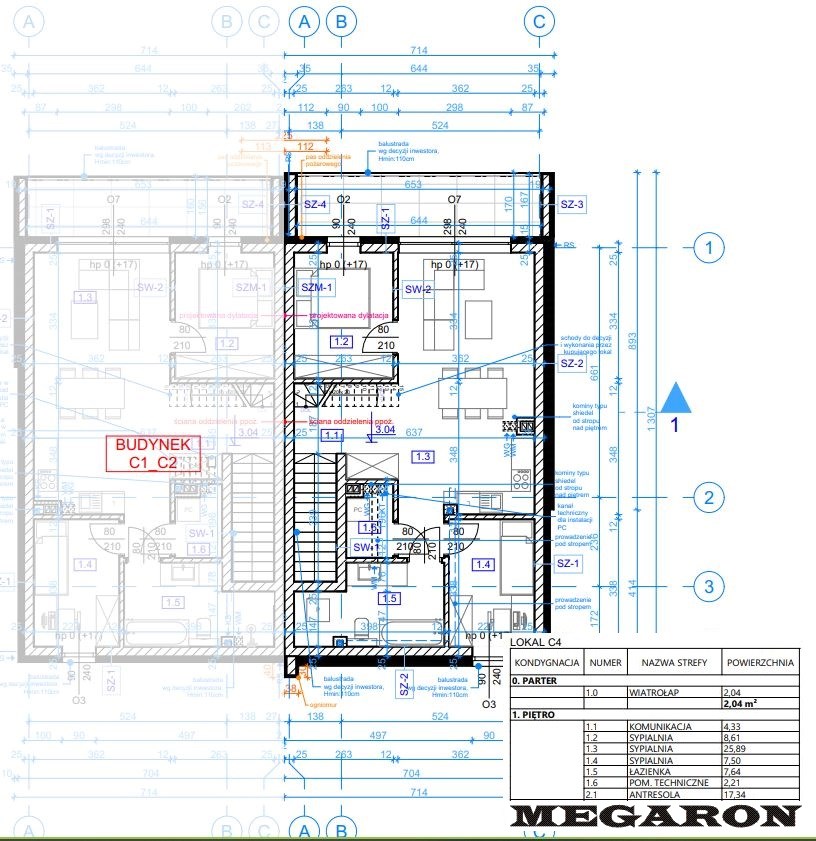 BUDYNEK C LOKAL C4 PIERWSZE PIĘTRO Z ANTRESOLĄ, STRONA PRAWA.