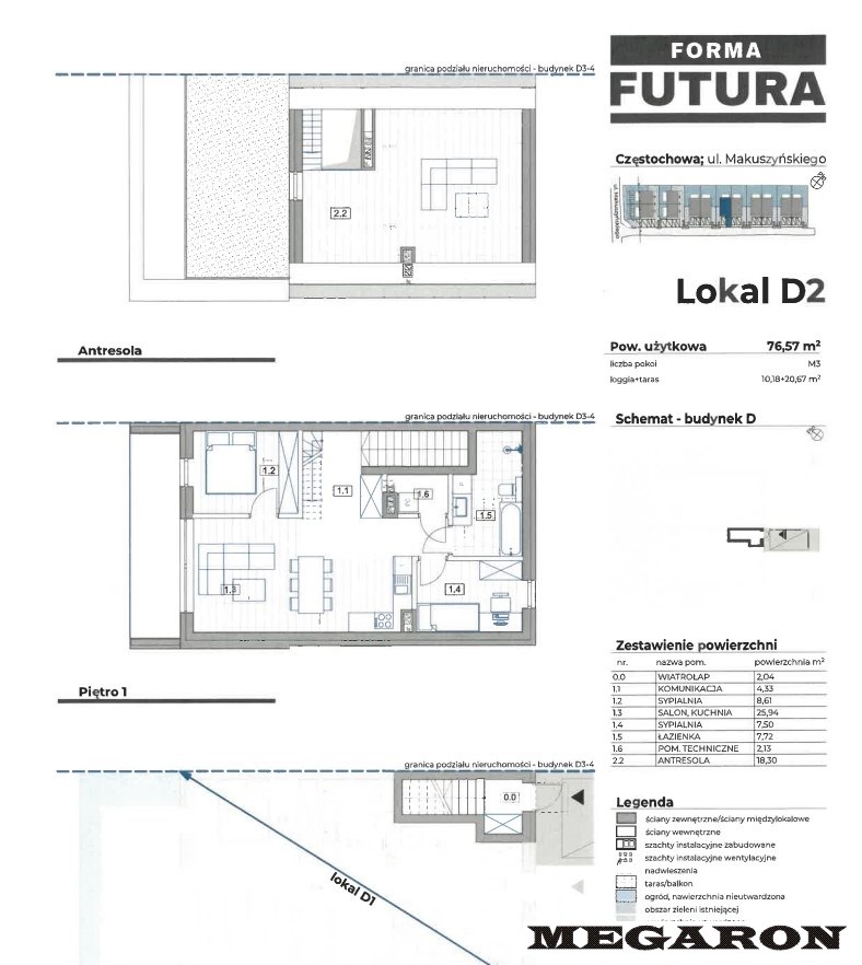 Przedmiotem ogłoszenia jest wyjątkowy apartament D-2 położony na pierwszym piętrze o powierzchni 76,54 mkw., na którą składa się: