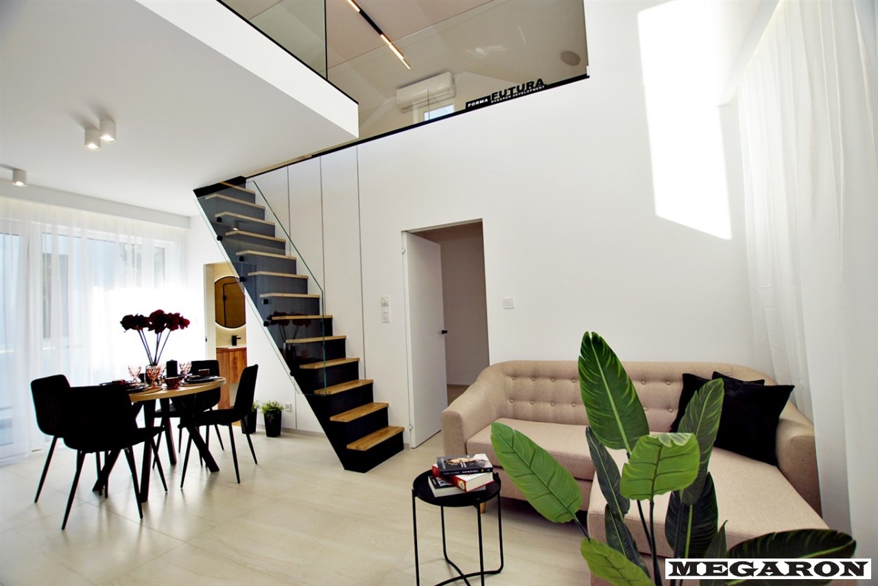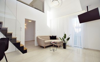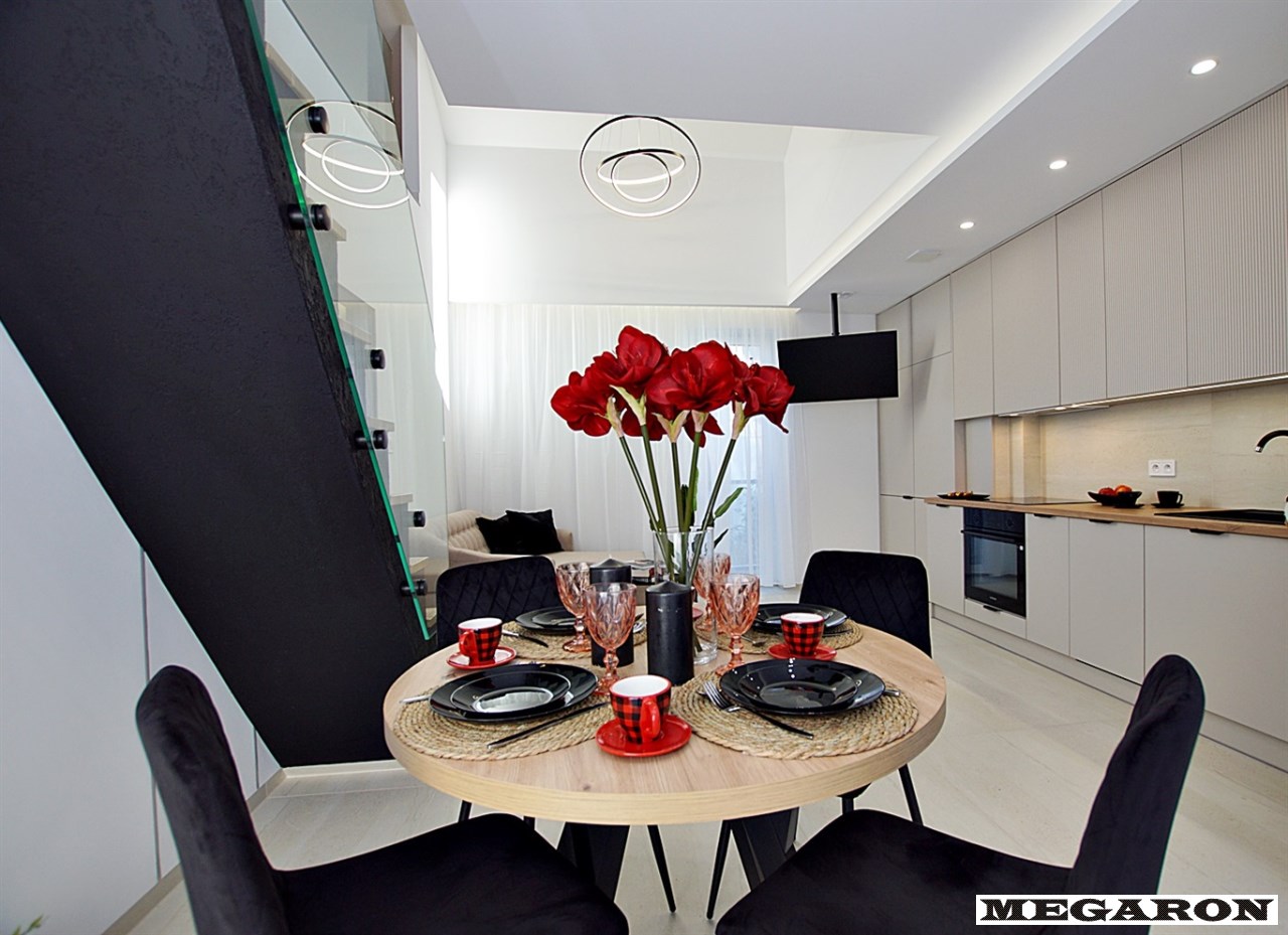luksusowy, dwupoziomowy apartament o powierzchni 60,21 m² to prawdziwa perełka. Położony na pierwszym piętrze nowoczesnego, czterolokalowego budynku jednopiętrowego, zachwyca przemyślanym designem i najwyższej jakości wykończeniem.
