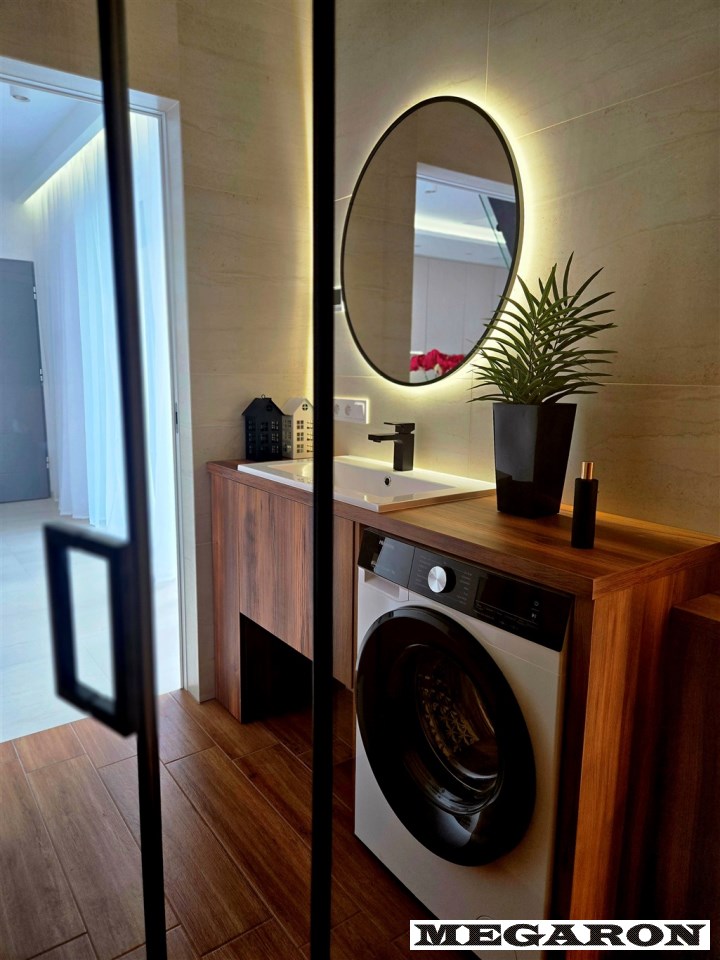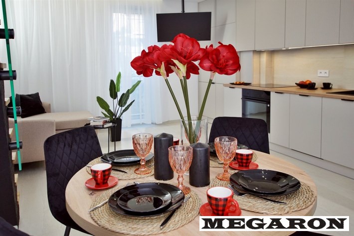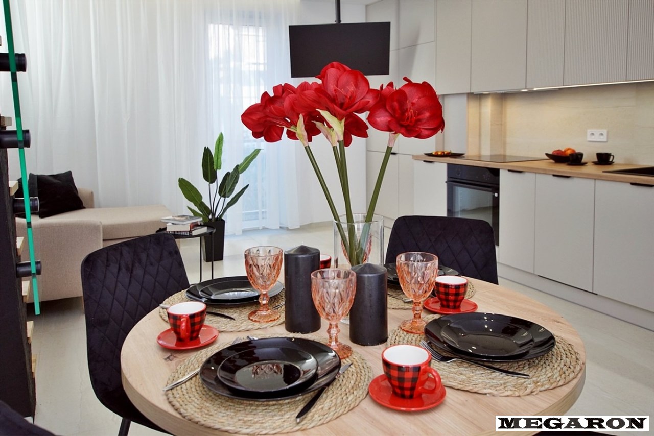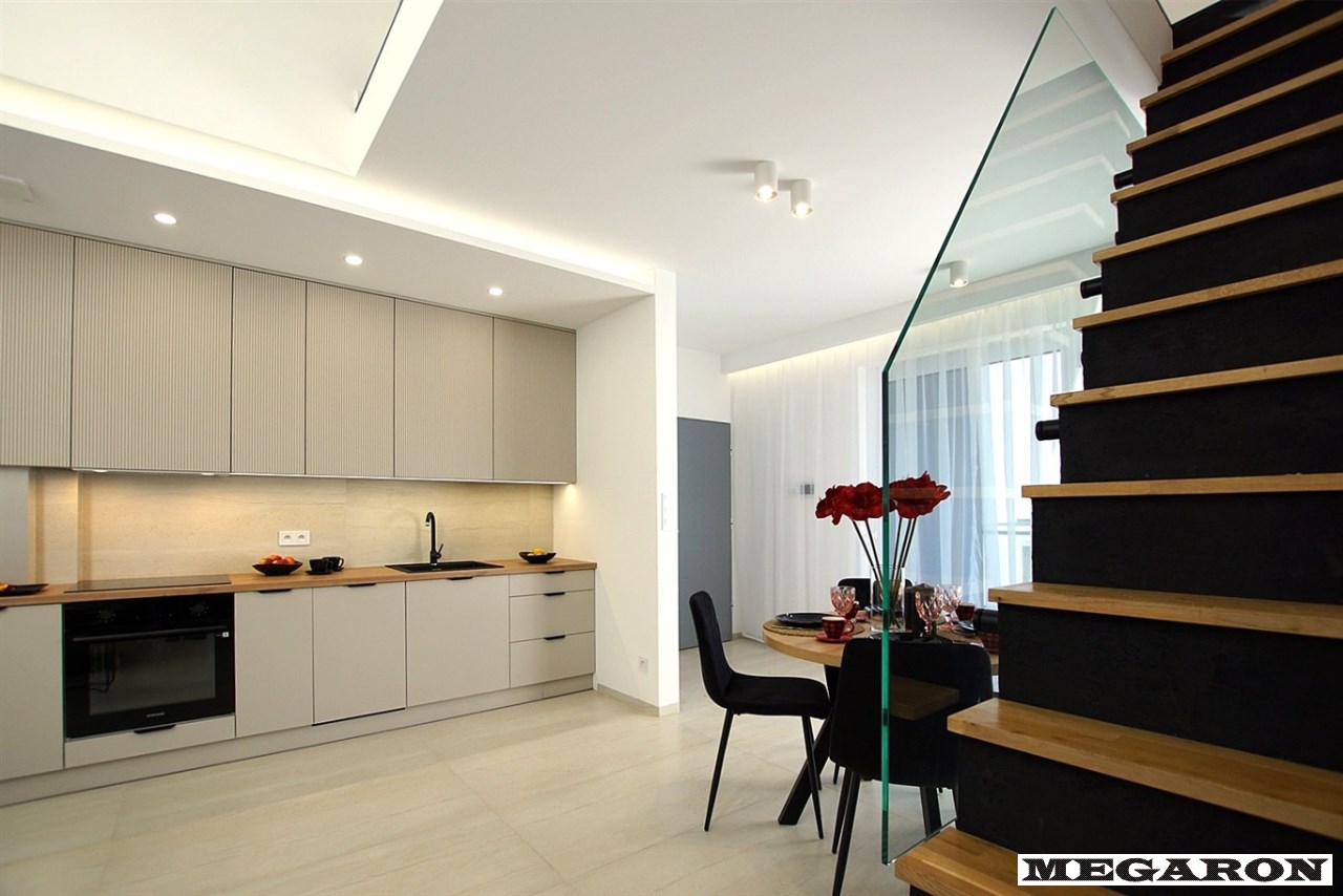 Gotowy do zamieszkania: Mieszkanie jest w pełni wykończone i wyposażone, gotowe do natychmiastowego zamieszkania. Aranżacja utrzymana jest w modnej, spójnej kolorystyce i eleganckim stylu.