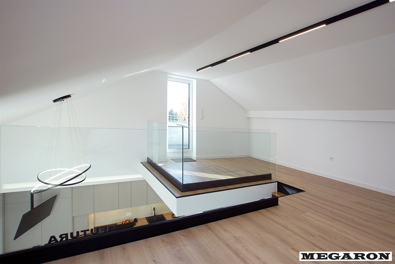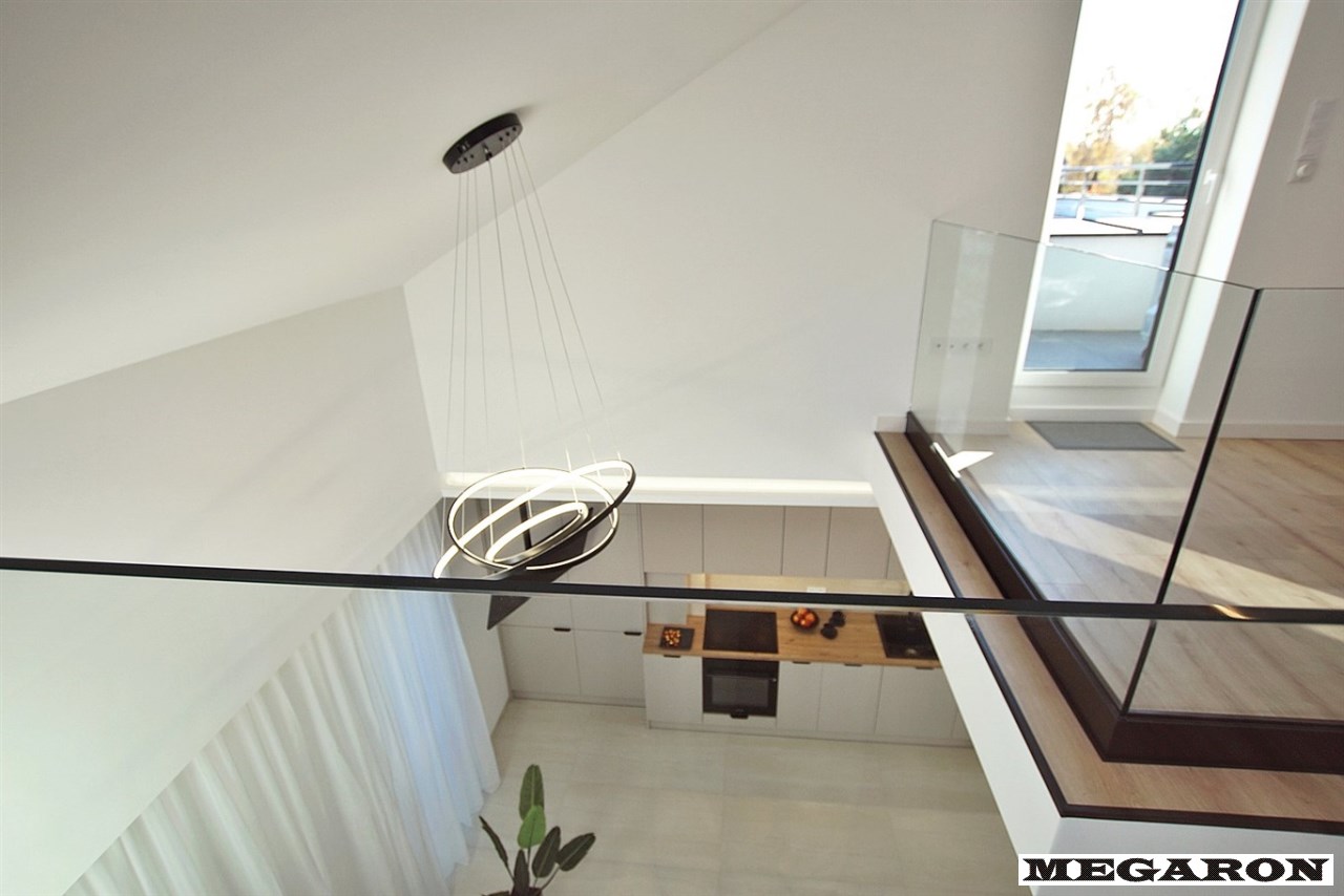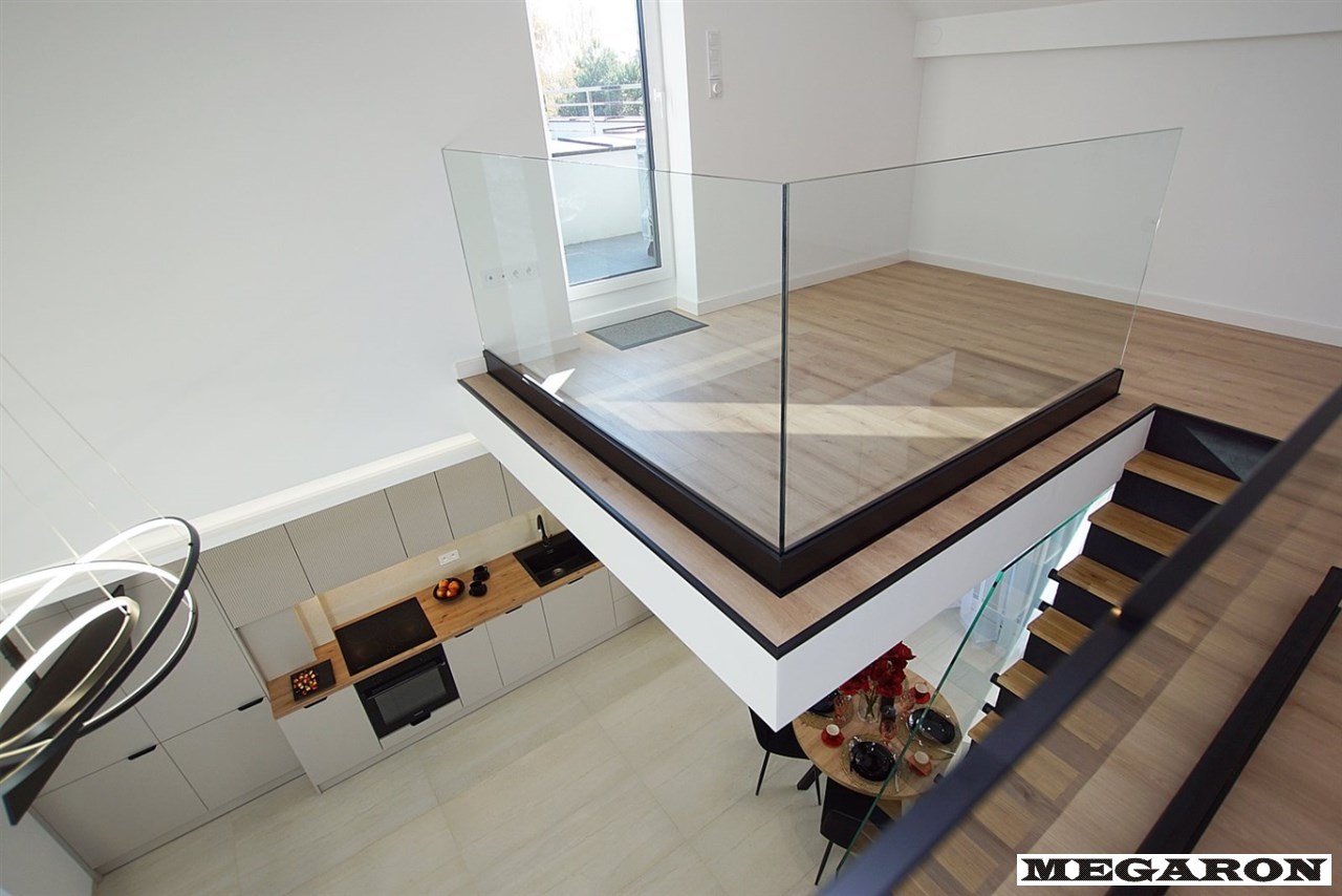 Antresola z powiększoną powierzchnią: Faktyczna powierzchnia po podłodze jest znacznie większa niż ta zapisana w metrażu (ponad 17 m² powierzchni użytkowej podłogi), oferując przestronną, dodatkową strefę (np. biurową, sypialną, rekreacyjną).