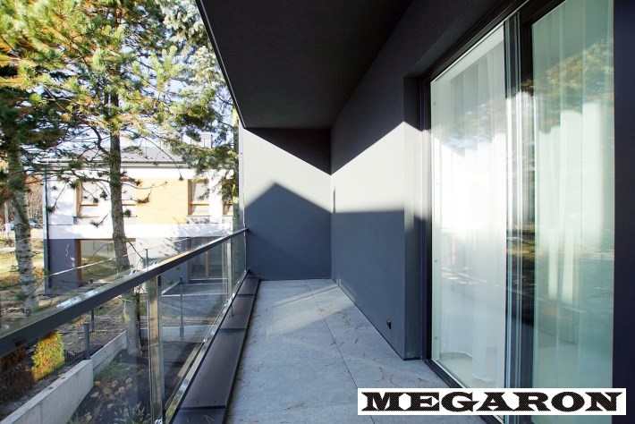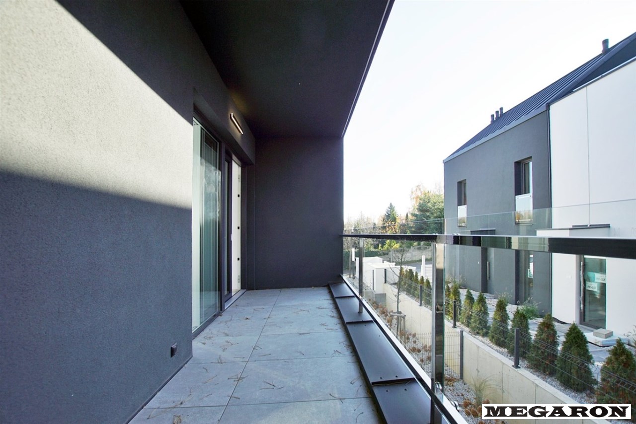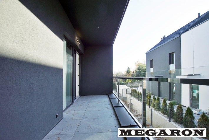 Dodatkowy duży balkon: Przestronny, podświetlony balkon dostępny z salonu poprzez nowoczesne, przesuwne okno trzyszybowe.