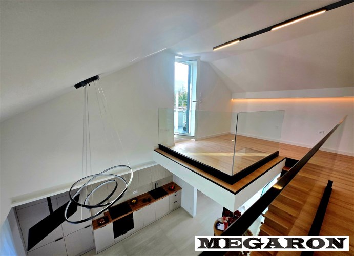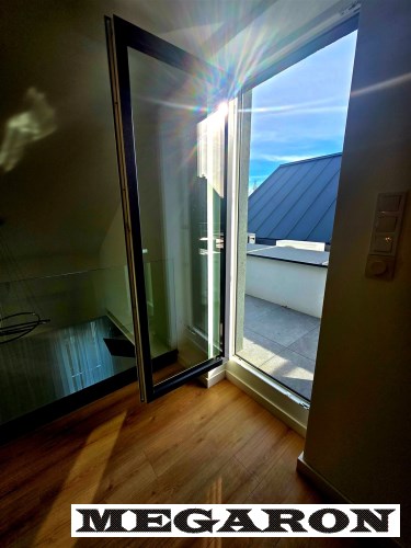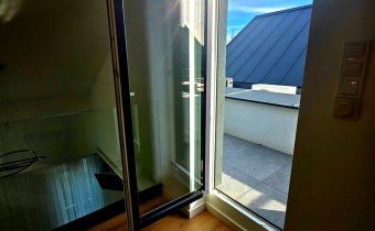 bezpośrednim wyjściem na prywatny taras na dachu z panoramicznym widokiem na okolicę.