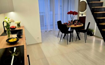 luksusowy, dwupoziomowy apartament o powierzchni 60,21 m² to prawdziwa perełka. Położony na pierwszym piętrze nowoczesnego, czterolokalowego budynku jednopiętrowego, zachwyca przemyślanym designem i najwyższej jakości wykończeniem.