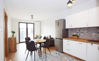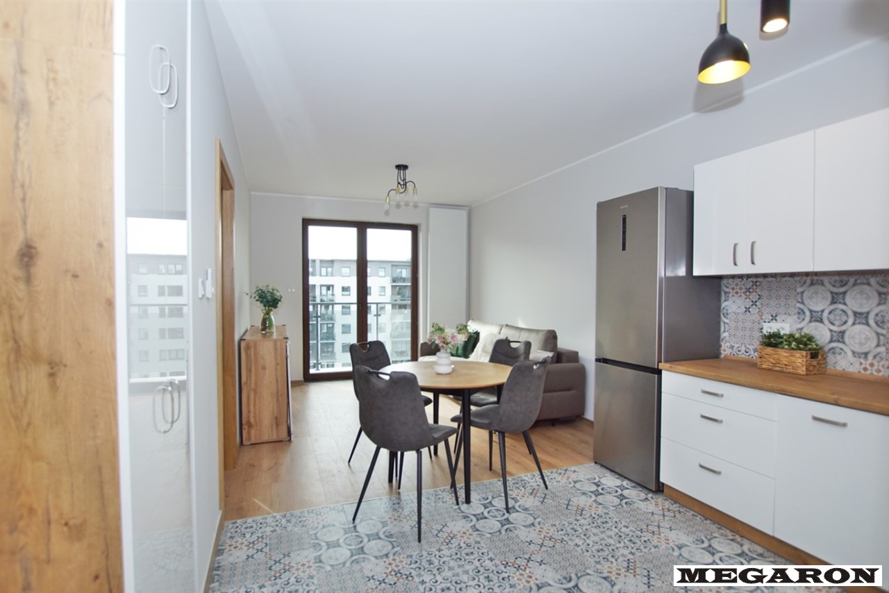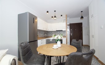Komfortowe mieszkanie zlokalizowane na nowym osiedlu, z doskonale rowiniętą infrastrukturą. Mieszkanie umeblowane, wyposażone, gotowe do zamieszkania . Na powierzchnię 43m2 skladają się; salon z aneksem kuchennym, z dużym, ladnym balkonem, sypialnia oraz łazienka . Kuchnia wyposażona w płytę indukcyjną, piekarnik, zmywarkę oraz chłodziarko-zamrażarkę. W sypialni wygodne łóżko,pościel oraz szafa . Dodatkowo do mieszkania przynależy komórka lokatorska. W salonie przgotowano kanapę, komodę, stół wraz z krzesłami oraz telewizor. Łazienka z wygodną kabiną prysznicową,różnorodne szafki do przechowywania, a także pralka do dyspozycji Najemcy. Dodatkowe opłaty administracyjne około 400 zl +media