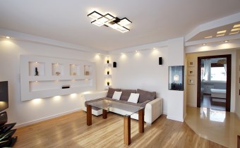 - designerskie meble wiszące z naturalnego forniru (okucia Blum), - nowe panele podłogowe i listwy przypodłogowe,